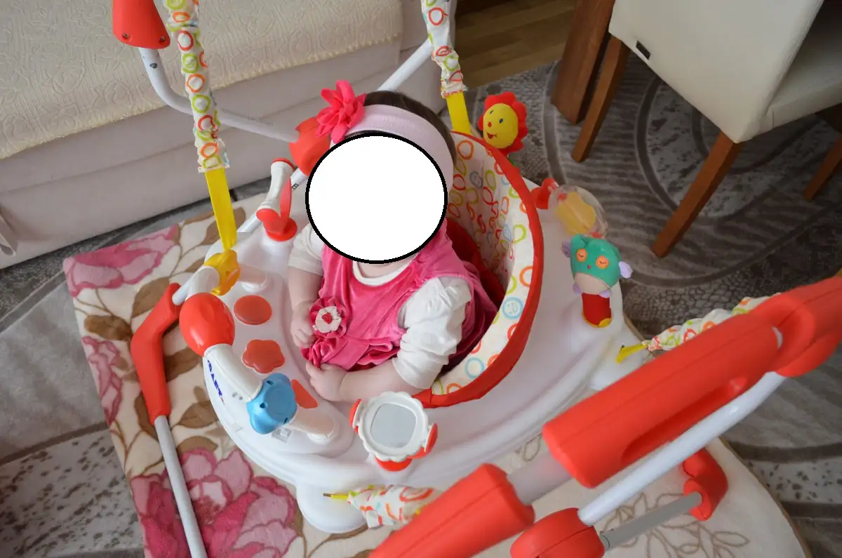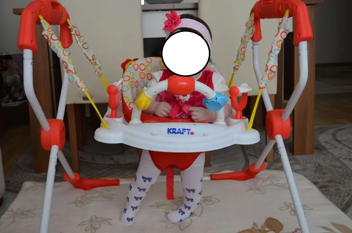 Sadece ön kraft yazan kısımın üstünde. elle döndürülen oyuncaklar var. onun sağ ve sol bacağı kökünden kırıldı. Kızım biraz ağırlık vermişti üzerine. Onları dibinden yapıştırdık. Dışarıdan belli etmiyor. Temiz ve çok kullanışlı bir hoppala. 15. aya kadar kullanıma uygun.. bizde büyüdük artık evde yer açmak lazım.. bu yüzden satıyoruz..