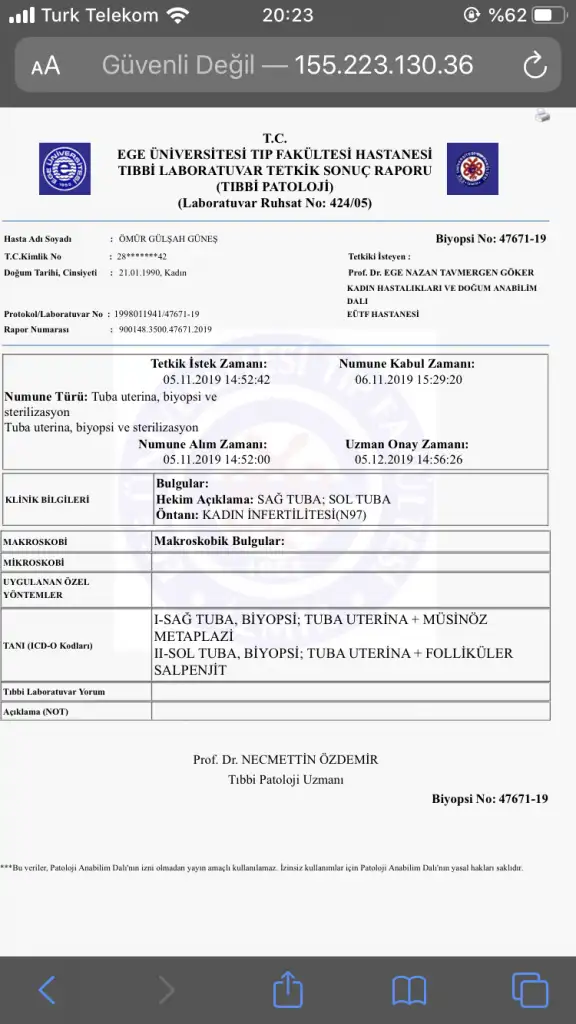 Okudum dikkatlice yardimci olmak isterdim ama bu benim anlayabilecegim bisey değil sanirim insallah sorun yoktur cok gecmis olsun bu arada isminiz çıkmış belki dikkat etmemissinizdir soylemek istedimMerhaba bişi sorcaktım laporoskopi ameliaytı oldum tüplerim alındı ve bu tüpler patolojiye gitti anlarmısınız çıkan sonuçtan