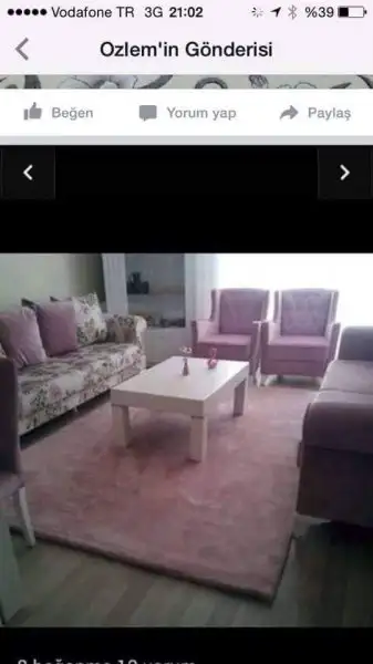 Bizim toplumumuzda zaten kadınlar hiçbir eşya kirlenmesin diye sürekli bir şeylerle örtmeye çalışıyorlar, koltuk örtüsü, raf örtüsü yok efendim masa östüsü, fiskos örtüsü, sandalye kılıfı bir de şimdi halı örtüsü çıktı.