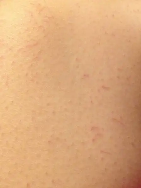 Yok şerit şerit değil o kıl kökleri kırmızı hatta kabuklu gibi birazKırmızı izler şerit şerit mi?