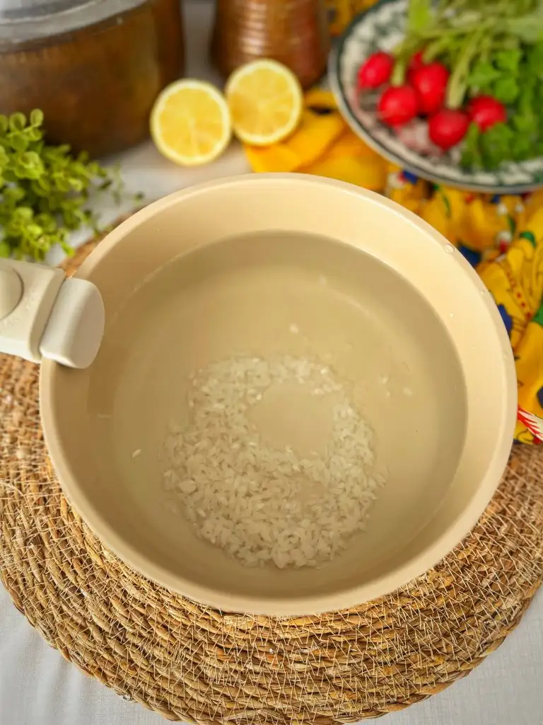 Çorbası için suyu ilave edip yıkanmış pirinci ekleyelim. Ocağa koyup kaynatalım
