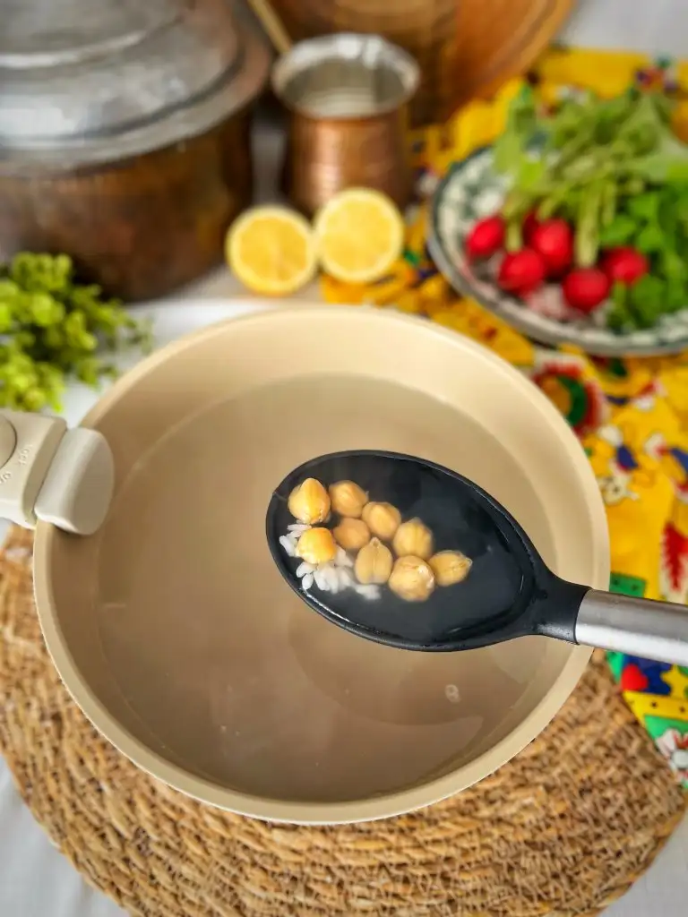 Kaynayınca haşlanmış nohutu ilave edelim