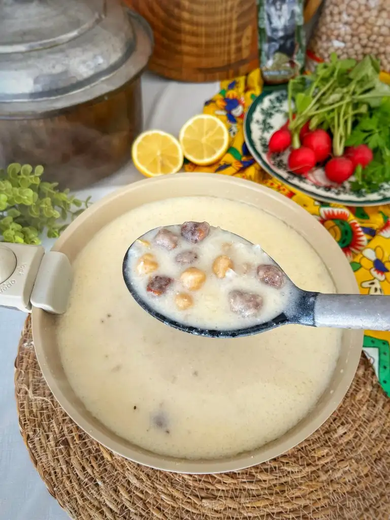 Çorbanın suyundan yoğurtlu karışıma 2 3 kepçe ilave ederek çırpalım