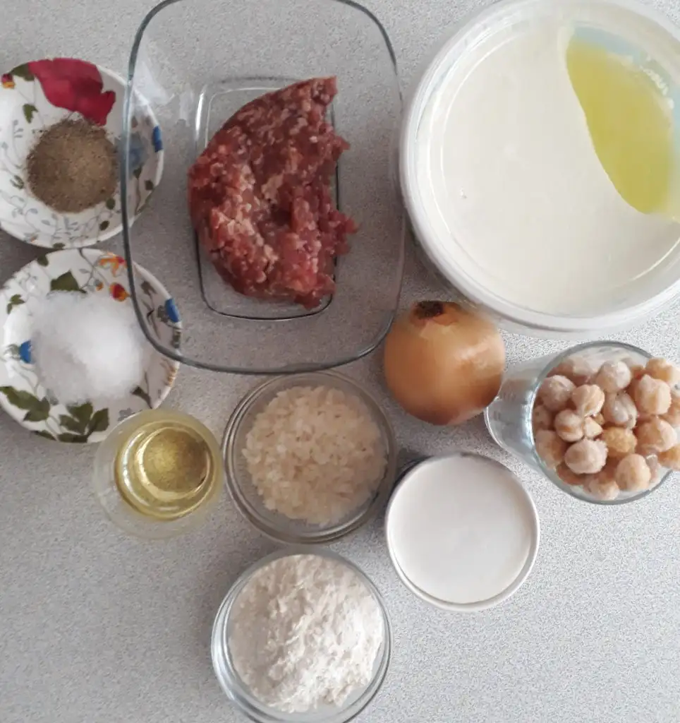 kıyma,rendelenmiş soğan, tuz,baharat karıştırıp küçük küçük köfteler yapıp kızartıyoruz ve çorbamıza ekliyoruz.
