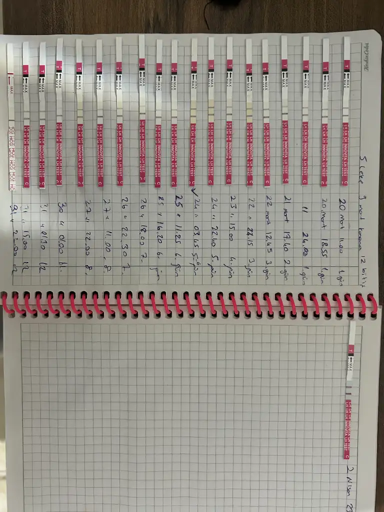 Fotoğrafta yan sayfada 2 nisana ait ovülasyon testi var bugün ki testte aynı sonuç verdi onu eklememişim deftere