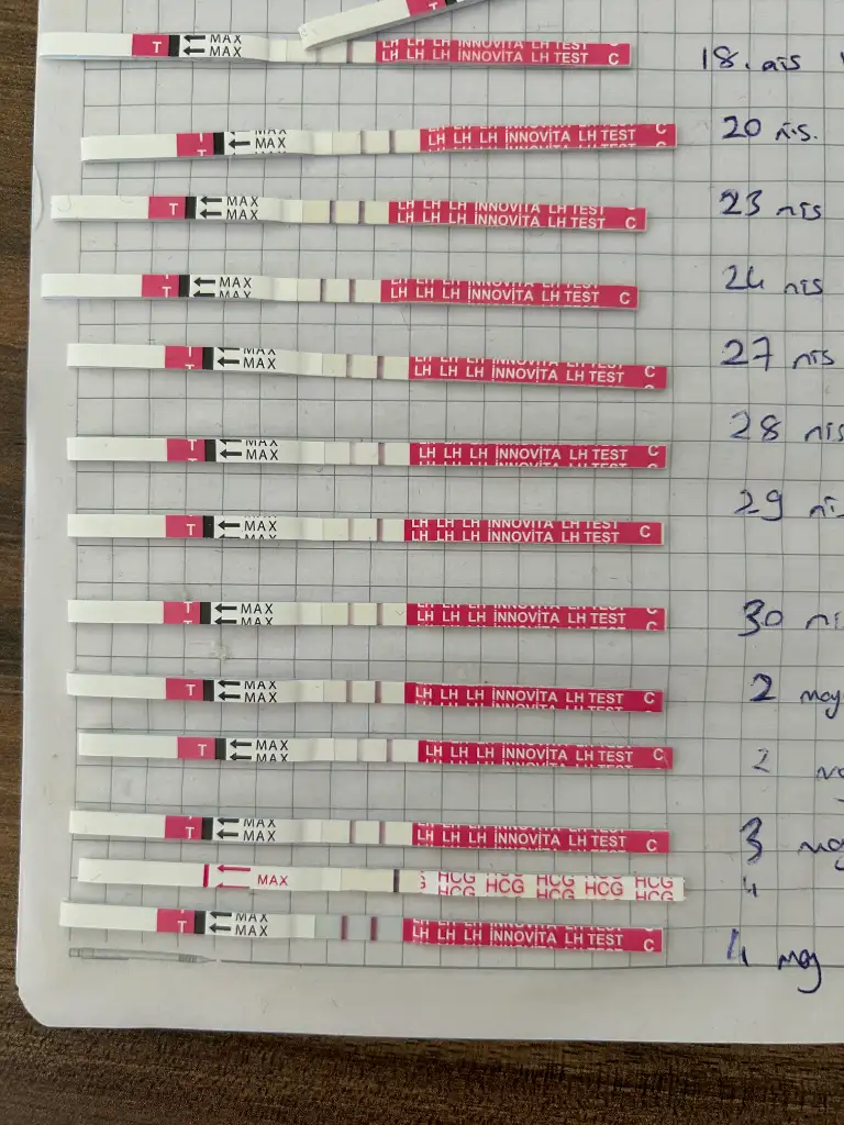 Geçen ay kahverengi lekelenmem olmuştu yine ama adetten 4-5 gün önce ve o zamanda testlerim pik gibiydi muhtemelen o zaman yumurtlama oldu ama çaylama olmadı adet oldum sonra22 nisan da iğne oldum demiştin 5 mayıs yine pik gibi test geçen ay da 2 kere pik olmuştu sanki testin