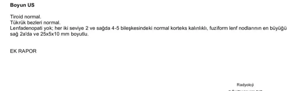 Merhaba ultrasona girdim o gün hastanede sistem çöktü, düzgün bakmadılar doktoruma göndermişler sonucu bir şey yok deyip geçiştirdi. Dahala ara ara şişlik hissediyorum ama psikolojik olabilir. (ultrasonu 1 ay sonraya attıkları için bir daha sura almadım) sizde başka ne belirtiler varMerhaba usg ye girdiniz mi acaba sonuç nedir bendede lenf şişliği var
