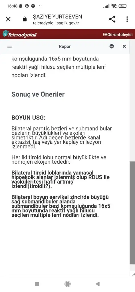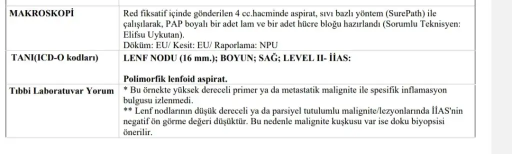 Ultrason sonuçları varBiyopsi olmadan önceki usg sonucunu da paylaşır mısınız. Biyopsi olmadan önce de takipte miydiniz lenf için