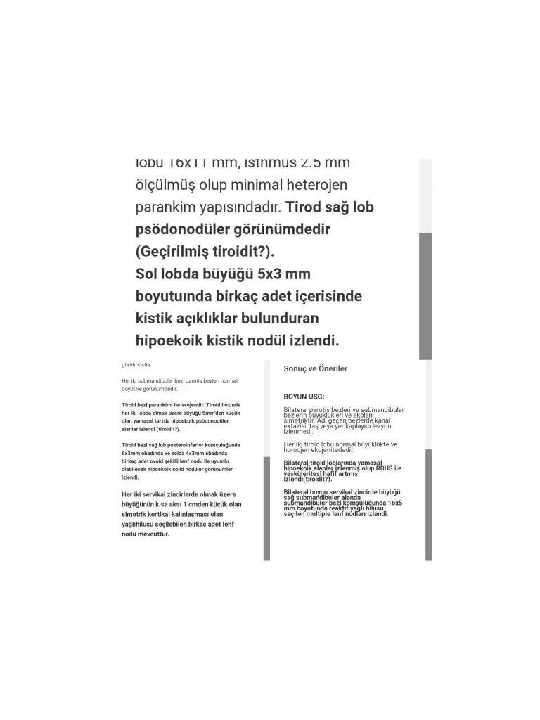Evet 3yildir önce tam anlam veremediler tiroid dendi nodül dendi en son lenf dendi ama sanırım nodulde var KBB.dok onlar için endoklin demiştiBiyopsi olmadan önceki usg sonucunu da paylaşır mısınız. Biyopsi olmadan önce de takipte miydiniz lenf için