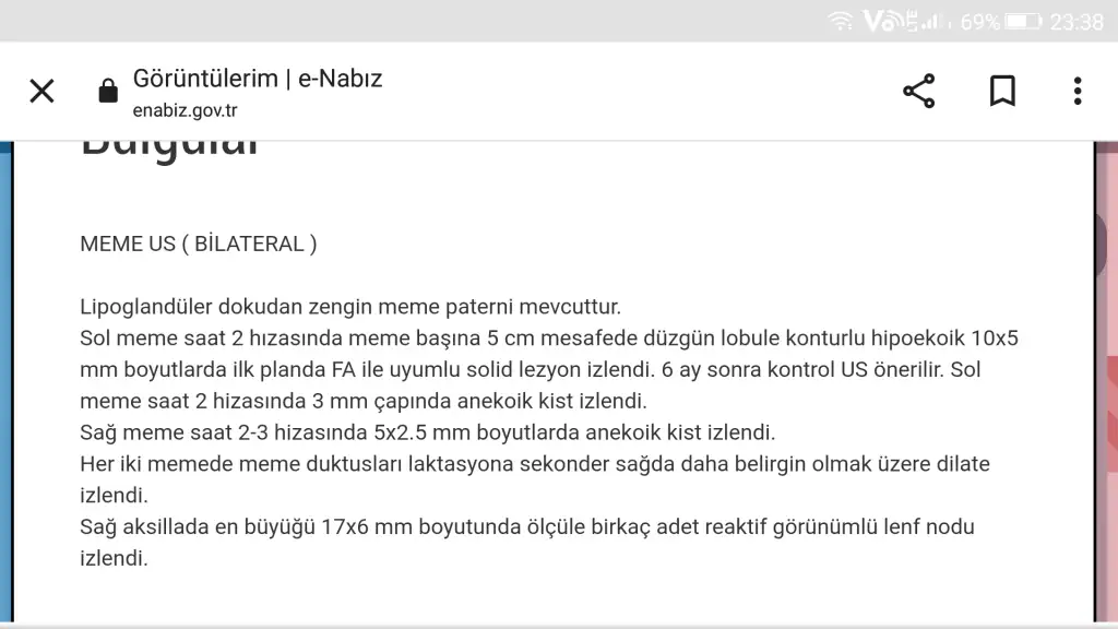 Merhaba, ben hamileyken koltuk altımda bir sertlik hissettim süt üretimi ile alakalı olabilir diye biraz da korktuğum için çok düşünmemeye çalıştım. Doğum olduktan sonra emzirdikçe yumuşadı hatta kayboldu sanki. Ama sonra sonra çok dikkatli incelersem elime yumuşak bir doku geliyordu en son doktora gittim önemli bir şey değil bende de var 6 ay sonra kontrole gel dedi ilaç falan da vermedi. Koltuk altımda reaktif lenf nodu çıktı bu antibiyotikle geçiyormuş sanırım ama bana ilaç vermedi enfeksiyon kaynaklı olsa hemen geçerdi sanırım ama uzun zamandır var dediğim gibi yumuşak çok belli olmayan bir şişlik gibi. Ya kötü bir şey varsa diye aklım çıkıyor sürekli aklımda hep mutsuzum. 1 yaşında kızım var korkuyorum. Ben mi abartıyorum bilmiyorum ama bilen biri varsa yardımcı olabilir mi kafayı yiyeceğimMerhabalar benim 3 ay önce boynumda 3 cm e yakın lenf bezi çıktı kbb ye gittim enfeksiyondan şüphelenip antibiyotik yazdılar kullandım ama küçülmedi daha antibiyotiklerim bitmeden 4 adette kasığımda çıktı aynı bezelerden özel hastaneye gidip test yaptırdım kan sonuçlarım normal çıktı ama doktorum kilo kaybımdan dolayı biyopsi istedi fiyat yüksek çıkınca kabul etmedim daha sonra devlet hastanesi hemotoloji bölümüne gittim oradaki doktorum ensemdede aynı şişliklerden olduğunu farketti antibiyotik kullanmamı geçmezse ameliyatla lenflerimden birini alacağını söyledi ilaçları kullanırken kulak arkamda 2 adet daha şişlik oluştu doktora gittim ilaçlarımıda bitirmiştim özel hastanede ultrason çektirip gelmemi istedi ultrason sonucumda küçülme yoktu ve tükürük bezimde yeni bir lezyon oluşmuştu dün ameliyatla ensemden lenf nodu alındı bilgisi olan varmı bunca şeyden sonra patoloji sonucu temiz çıkabilir mi? Bu da son ultrason bilgilerim
