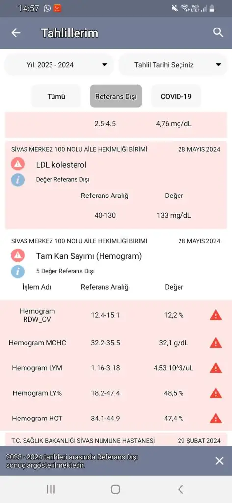 Hmm.Buna eşlik eden başka değerler varmı referans aralığında olmayan