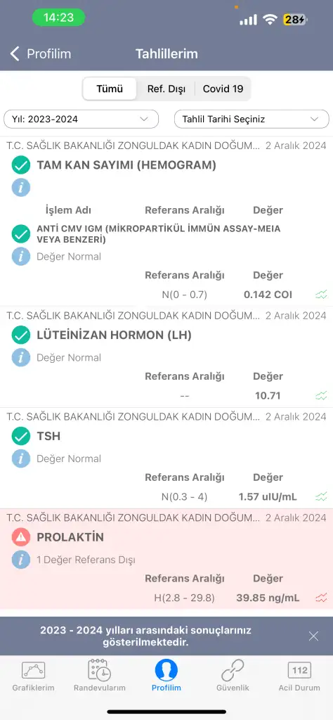 1.5 yıllık evliyim, cuma günü bidaha vericem kan prolaktin için. Beni asıl korkutan Lh seviyesi ve E2 hakkında bilginiz var mı ? Her ikiside referans aralığında aslında ama doktorun yumurta problemi olcağını özel ilaçlar kullanmamı söylemesi beni korkuttu amh sonucuda 10 güne çıkarmış biraz takıntılı bi tipim. Kan sonuçlarımı ekliyorum aşağıya tam anlatamadıysam oradan bakarsınız. Çok teşekkür ederim 🙏🏻