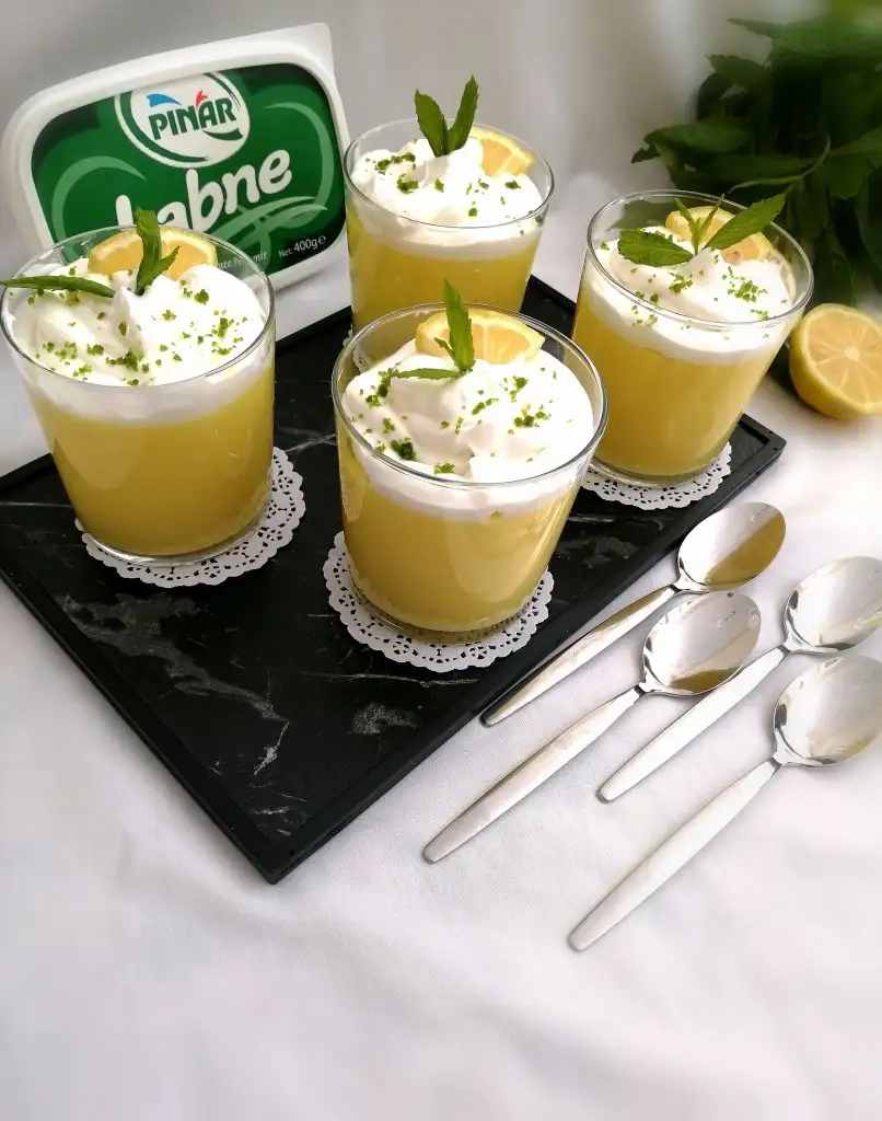 Limon suyu, vanilya, Pınar Labne hariç tüm malzemeleri karıştırıp pişiriyoruz