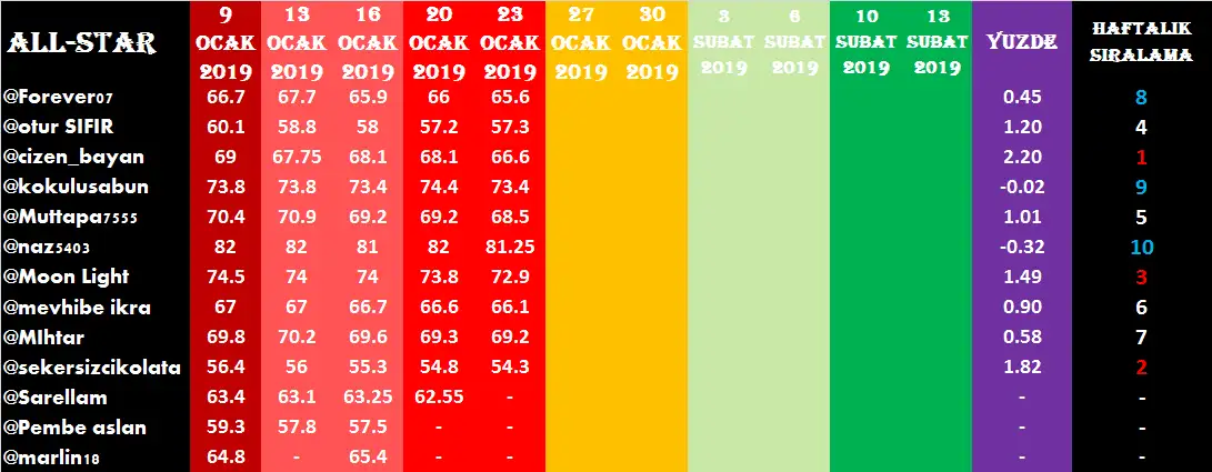 Nasil mutluyum kaldı 2 kilo :))Haftalik yuzde siralamasi: