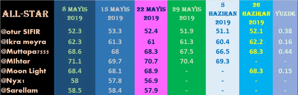 9. Ocaktan itibaren verilen kilolar. Aslinda genele vurunca sonuclar gayet iyi. All StaR olarak toplamda 30.9 kilo vermisiz. Umarim verilen bu kilolar daim olur. :KK50::nazar: