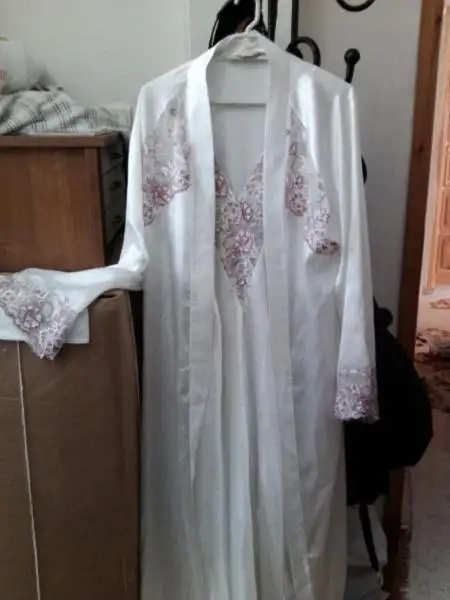 Gecelik + Sabahlık setim 2 adet , pembe gecelik çapraz askı o yüzden asamadım yaBeyaz olan uzun pembe olank ısa ikiside saten