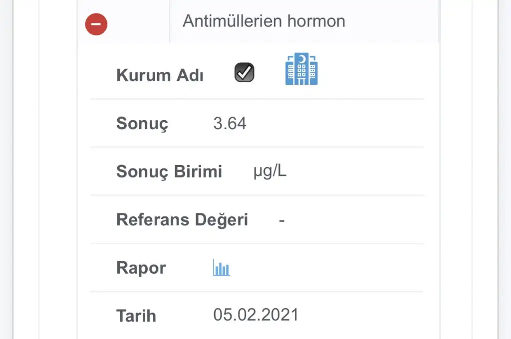 tahlil sonucum bütün e nabızda çıktı. amh değerim fotoğraftaki gibi çıktı. internette “amh testinin normal değerleri 2.6 - 6.8 ng / ml olarak gözlendi” yazıyor. orada ng/ ml cinsinden hesaplanmış benim tahlilim sanırım ug/l cinsinden. tam okuyamadım ama ug diye okudum. yani benim değerim normal mi. bakarsanız o kadar mutlu olurum ki. erken menopozdan korkuyordum. doktor önemli olan amh demişti ama doktora ancak çarşamba gidebilirim. matematiğim de sıfır. sizden başka soracak kimse gelmedi aklıma