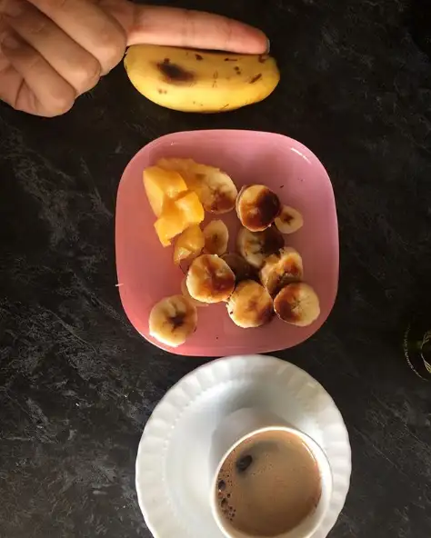 ara öğünde parmağım kadar muza keçiboynuzu özü döktüm bir tatlı kaşığı kadar. bir kayısı ve bir sade türk kahvesi