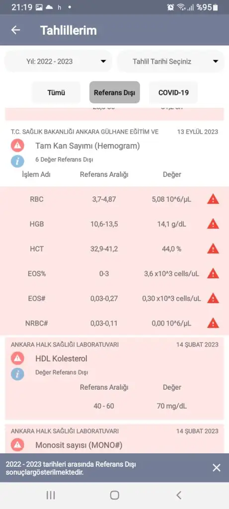 Esim hastanede calisiyor tanidigi prof 2 doktora sorduk gosterdik kadinlarda normal bu degerler dedi hatta biri yarin saat 8 30 da gel ilk sana bakiyim içimz rahat olsun dedi birazdan da ulturasonu gosterecem kbbye icim rahatladi yemin ederim dunden beri bi gram uyuyamadim