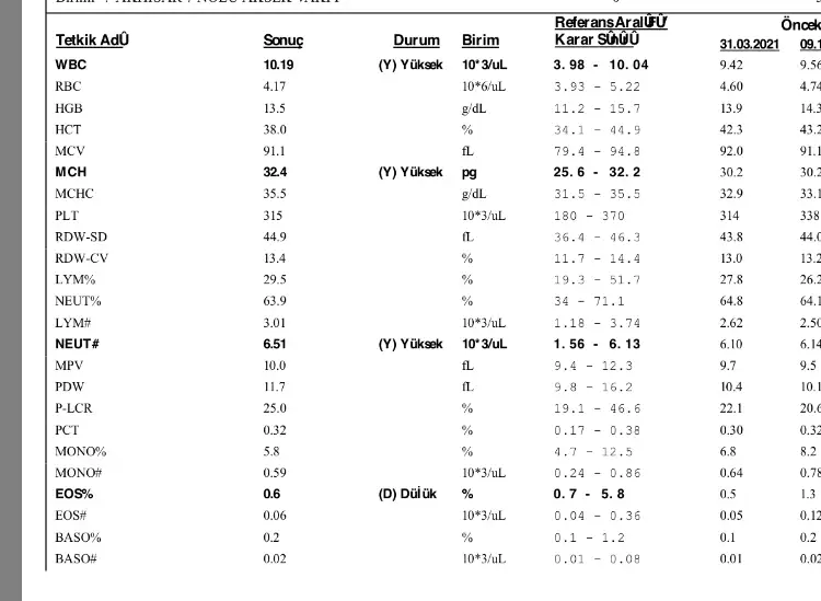 Wbc vücutta enfeksiyon vaesa yüksek cikar. Cok az bir yukseklik var. Bir sey degil.