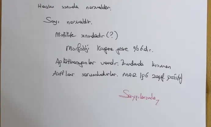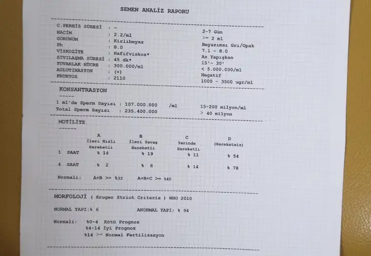 Hareketsiz sperm fazla. Takviye ilaçlar verebilir. Bitkisel şeylerle de destekleyebilirsiniz. Sigara falan da içiyorsa etkiler