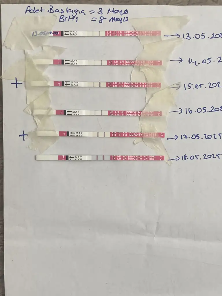 benim testimi de yorumlar mısınızArkadaşlar merhaba sat 13 Nisan genelde 23/24/25 günde bir regl oluyorum regl bitiminden itibaren ovulasyon testi deniyorum ama asla anlayamadım yardımcı olur musunuz pik olmuş mu yada çatlama var mı iki çizgi tamamen eşit değil cunku