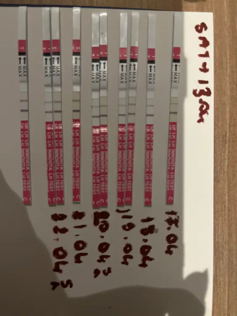 benim testimi de yorumlar mısınızArkadaşlar merhaba sat 13 Nisan genelde 23/24/25 günde bir regl oluyorum regl bitiminden itibaren ovulasyon testi deniyorum ama asla anlayamadım yardımcı olur musunuz pik olmuş mu yada çatlama var mı iki çizgi tamamen eşit değil cunku