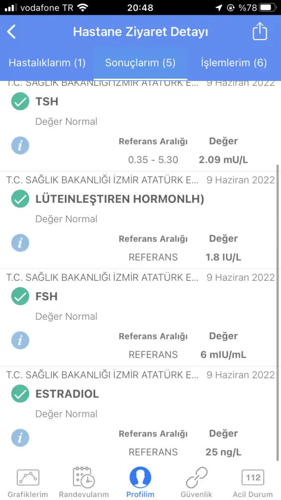 Ya hiçbir şey söylemediler ki pko var diye birşey denmedi. Geçen ay tekrar tahlil vermeye gittiğimde yumurtalıklarda hiçbir sıkıntı yok denildi tahlillerim de temiz dendi hatta ben kendim hocaya dedim pko olabilir mi bende yok dedi öyle olsa adetin düzenli olmaz çok aşırı kilon olur bilmem ne. Hatta bak canım tahlillerimi göstereyim 9 haziranda vermiştim kan tahlili sonuçları paylaşayım seninle. Yumurtalıklara da baktı alttan muayene ile temiz dediCnm sende pko mu var ondan sormuştur normalde yumurtlama 14. Gün olur ama pko da 21 günde oluyor ondan yumurtlamaya bakacak bana da öyle yapmislardi