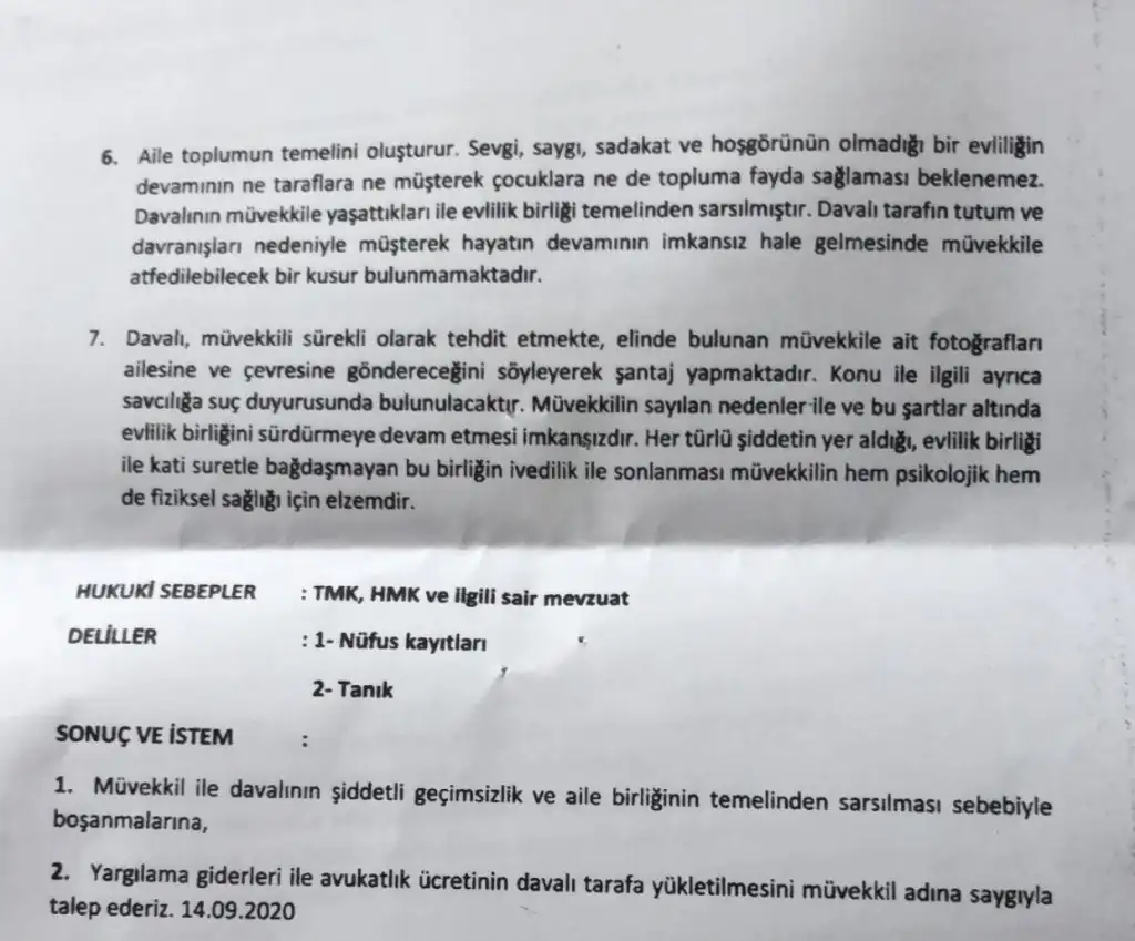 Benim de çekişmeli davam var.Cocuk var,tazminat nafaka talebim var.Avukatim en az iki yıl süreceğini söyledi fakat 3-5 yıl da sürecek değil dedi.Bu arada karşı taraf karara itiraz ederse bir yıl da temyiz sürermis,yani benim durumumda an biri için üç yıl diyelim.Tazminat istememek dava süresini kısaltır mi diye sormuştum avukata,hayır demişti.Vekayet ve nafaka da etkilemiyor,çünkü onlar zaten geçici olarak en baştan belirleniyorİyi geceler kızlarSizleri çok sıkmadan direkt konuya geçeceğim. Ben boşanma aşamasındayım. Çocuğumuz yok.Boşanma nedenimiz: Madde kullanımı , şiddet ve paranoya... Ben davayı açarken sağlıklı bir psikolojide değildim. Ve baskı altındaydım. Ölüm tehditi vs. Dava dilekçemde madde kullandığını öne sürmedim.Belki duruşmaya arkadaşlarıyla birlikte gider de bir de beni rezil ettin der, daha beter bana bilenir diye. Sonra çok pişman oldum. Avukatıma söyledim. Avukatım ise savunmanın değiştirilemeyeceğini, sadece genişletilebileceğini söyledi. Şiddet gördüğümü ve kafamda telefon kırdığını belirttim ama. Darp raporlarım olduğunu da. Mahkeme gerekli görürse istenecek darp raporları. Resmî olarak 1 sene 7 aydır evliyiz. 8 aydır da ayrı yaşıyoruz. Özel fotoğraflarımı göndermişti babama. Davayı açtıktan sonra gönderdi özel fotoğraflarımı. O yüzden avukatım sonradan eklemiş o bilgiyi de dilekçeye. Anlaşmalı boşanmayı kabul etmişti. Kendi memleketine dönüp amateme yatacakmış , gelemezmiş duruşmaya. Yani çekişmeli devam edecek yine.Sorum şu ki : Çekişmeli dava ne kadar sürer ? Aranızda belki tecrübeli kadınlar vardır. Çocuğumuzun olmaması dava süresini kısaltır mı ? Maddi manevi tazminat ve nafaka talebimde yok. Mahkeme bunları göz önünde bulundurur mu ? Ön inceleme duruşmam henüz görülmedi. Annem sürekli, bitseydi bir an önce , ne zaman olacak dava ? , kurtulamayacak mısın sen bu psikopattan , yıllarca uğraşacağız vs. gibi şeyler söylüyor. Yıprandım artık düşünmekten. Derslerime mi odaklanayım boşanma konusunu mu düşüneyim . Ders çalışmamı bile engelliyor bu durum. Arkadaşımın tanıdığının davası 4 seneden beri devam ediyormuş. Ama onların çocukları varmış. Benimde öyle olmaz değil mi Avukatıma ulaşmak cumhurbaşkanına ulaşmak gibi bir şey olduğu için sizlere sormak istedim. Dava dilekçemin son iki maddesini gösteren fotoğrafı ekliyorum. Son eklenen o madde boşanma sürecimi hızlandırır mı ? Okuyan ve yorum yapan herkese şimdiden teşekkürlerimi sunarım.