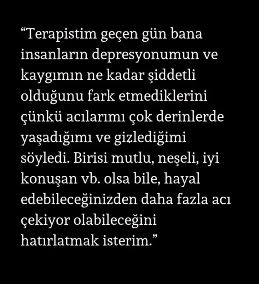 Ben majör depresyon, aksiyete ve travma sonrası stresi aynı anda yaşadım. Büyük bir travma sonrası. Majör depresyon hastası bi insan derdini bile anlatamıyor çoğu zaman.