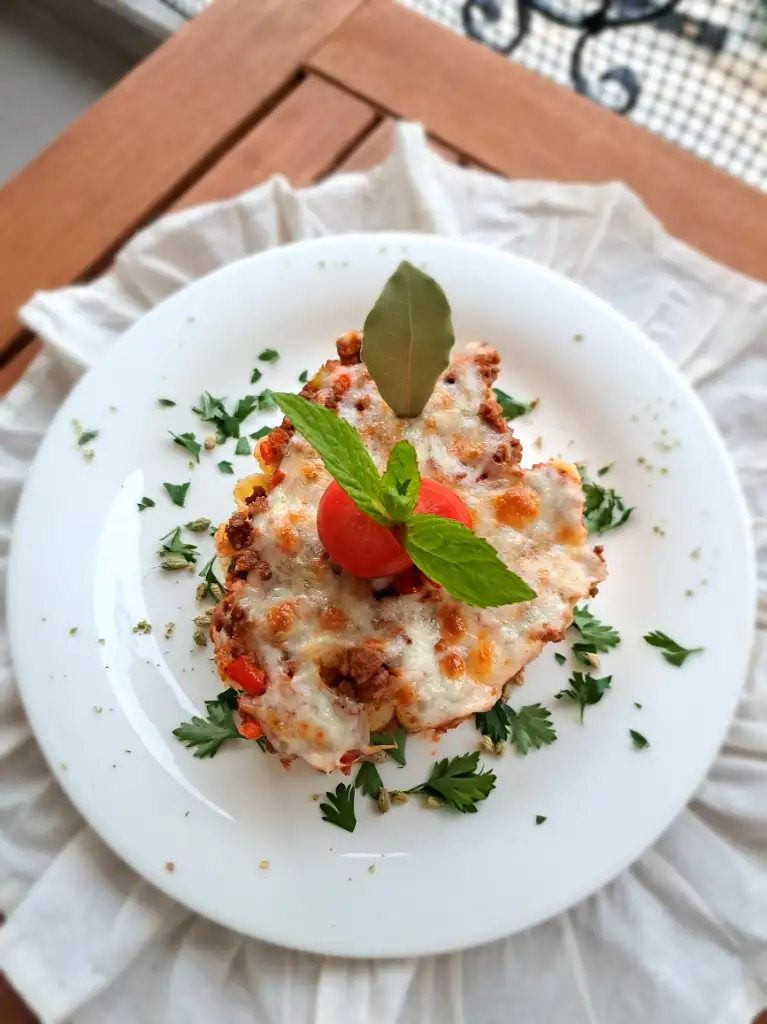 9. Üzerine kaşar peyniri ekleyerek üzeri kızarana kadar fırında pişirelim.