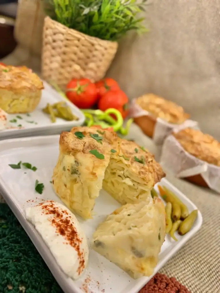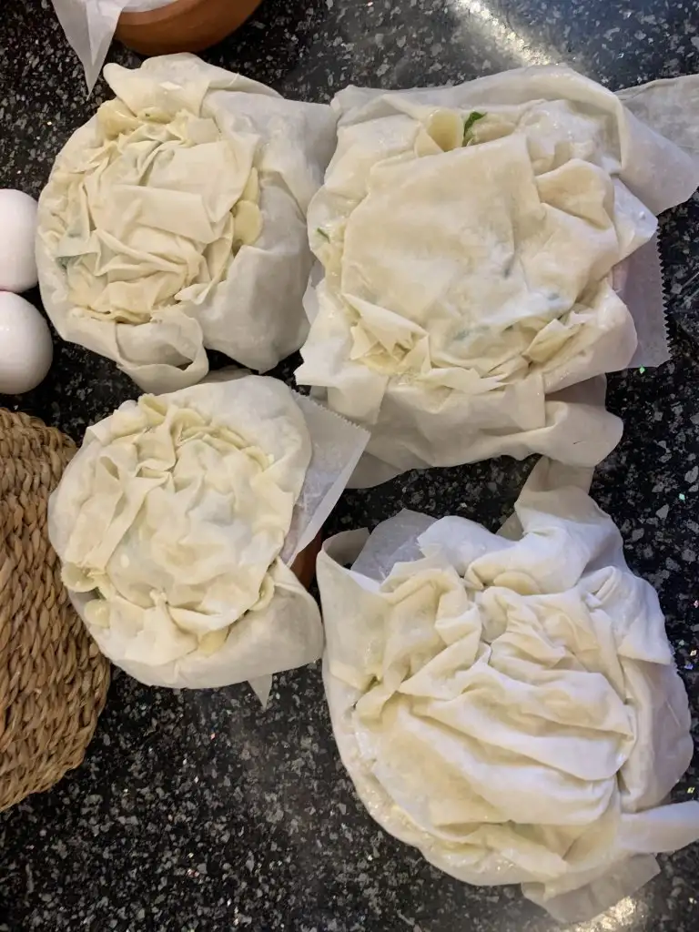 - Son olarak kalan üçüncü yufkamızı da serip taşan kısımları da katlayalım.