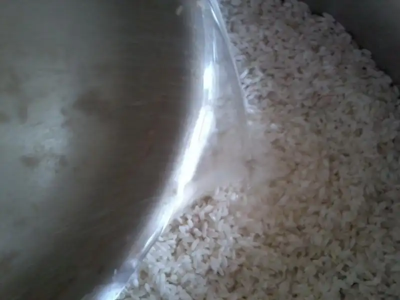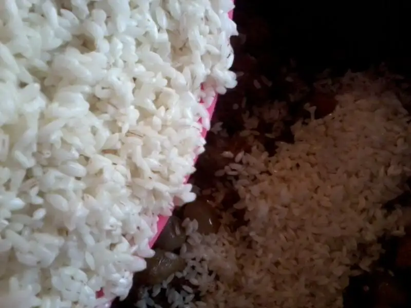 Üzerine tuzlu suda bekletip bol su ile yıkayıp süzdüğümüz pirinçlerimizi ilave ediyor hiç karıştırmadan pirinçlerin üzerini geçecek kadar su döküyoruz.