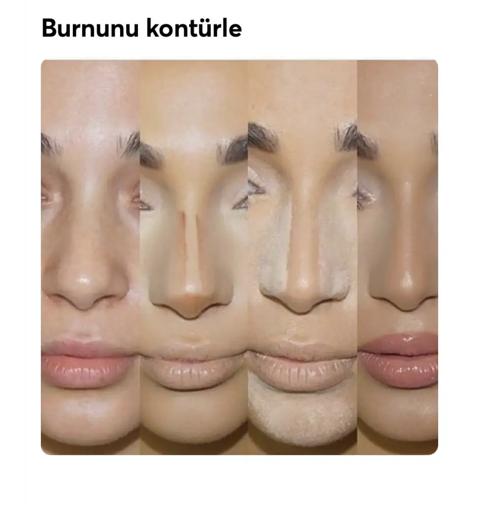 Elbet estetik bir müdahale görüntüsü değil ve yan profilden anlamsız kalsa da odak noktayı başka bir noktaya (göz, dudak) toplayıp, buruna da birkaç hareket yapınca, fena olmuyor değil.