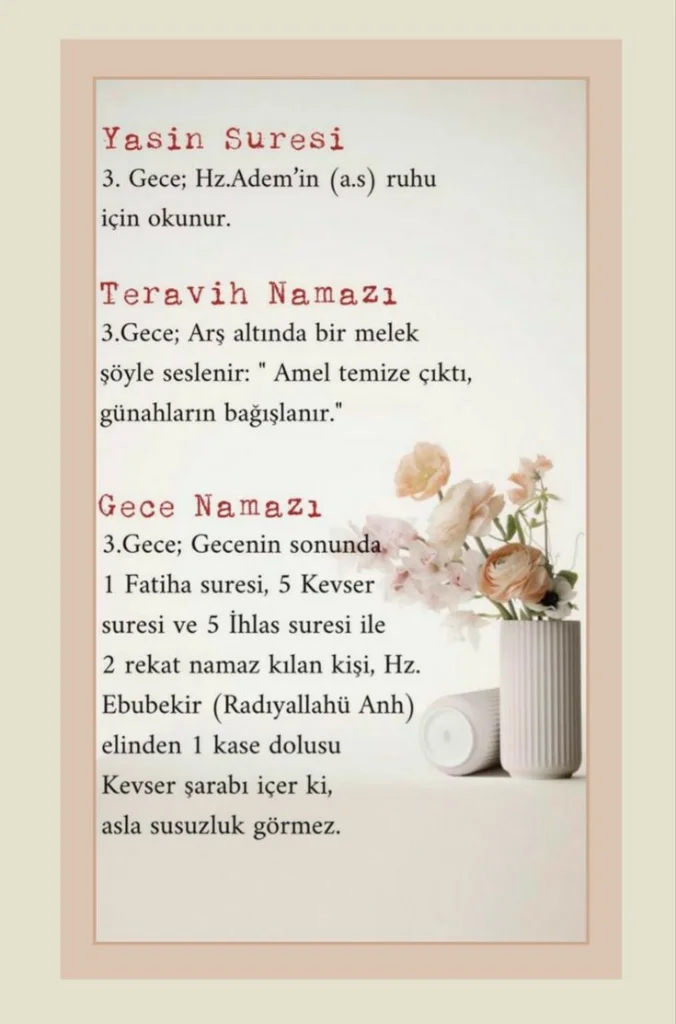 2 gece teravihe gittim, vakit namazlarımı kıldım.