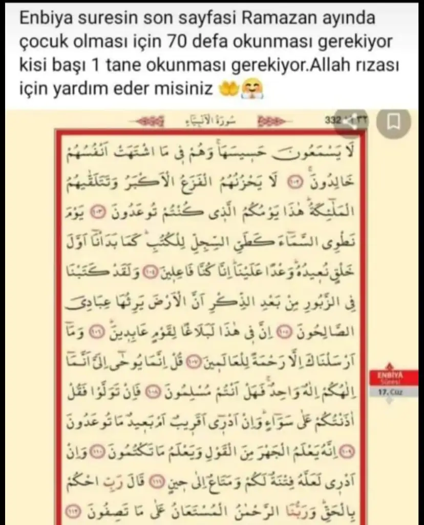 Baloncuk öğle namazımın arkası okuyacam canım ve kadir gecesi dualarında ayetlerde var Rabbim hayırlı sağlıklı evlatlar nasip etsin
