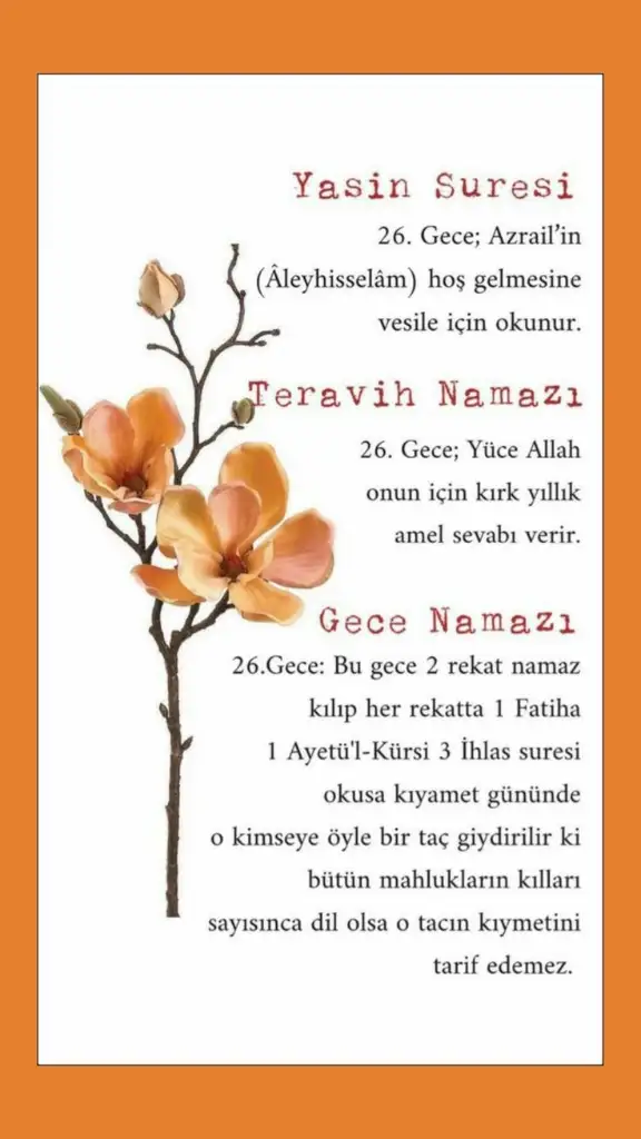 Akşam namazından itibaren 26. Gece oluyorMerhaba bugün mü 26. Gece oluyor 00 dan sonra yani