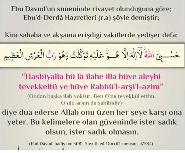 100 Hasbiyallahü la ilahe illahü aleyhi tevekeltü...