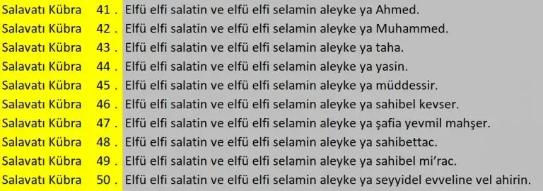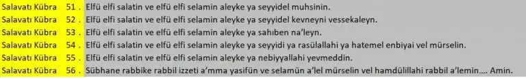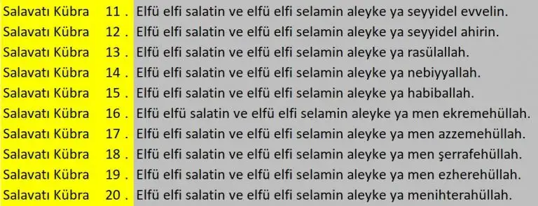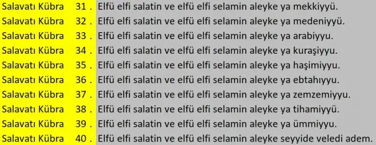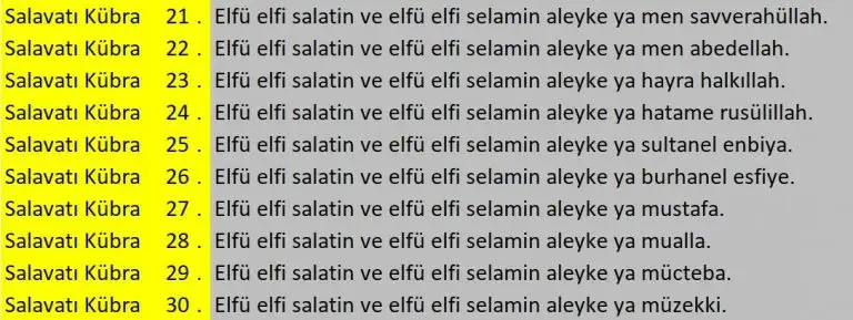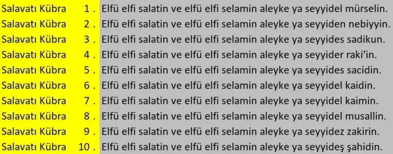 Salavatı Kübra, okunmasında çeşitli faydaları olan ve kişilere huzuru aralayan bir duadır. Her kim bu duayı bırakmadan düzenli olarak okursa Allah ona çeşitli ikramlarda bulunacaktır. Pek çok salavat çeşidi var, ancak aralarında bulunan en büyük salavat, salavat-ı Kübra’dır.