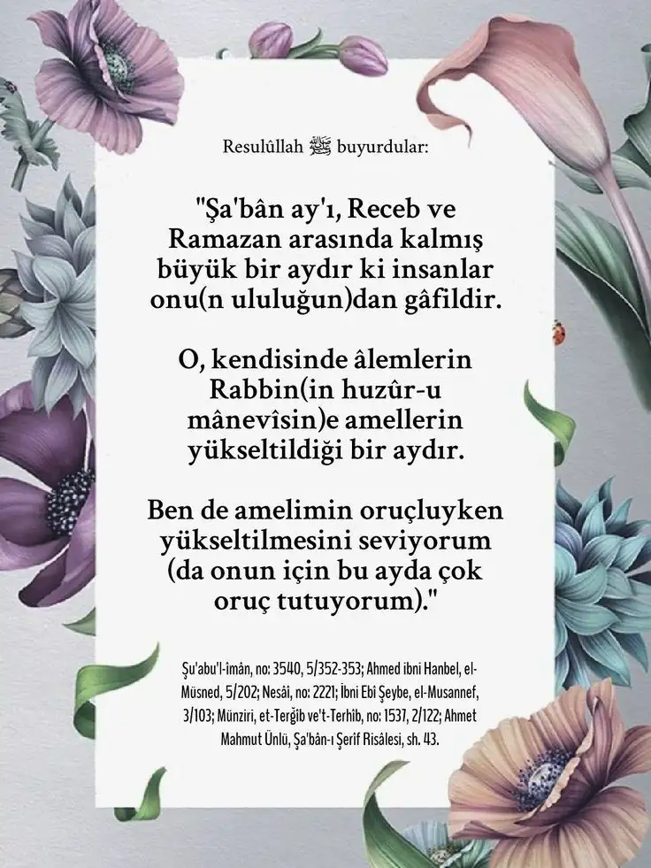 Şaban ayının son 10 gününe girdik nimetlerinden faydalanalım.