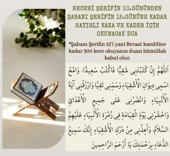 Türkce anlami varmi arapça bilmiyorumBugün ayrıca okuyalım ama bu dua Şaban ayında da okunuyormuş.