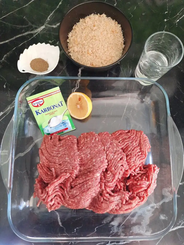Kıymamızı yoğurma kabına alıp soğan hariç tüm malzemeleri ekliyoruz.Ve en az 15 dakika yoğuruyoruz.Bir saklama kabına alıp üzerini örterek tercihen bir gece dolapta dinlendiriyoruz.