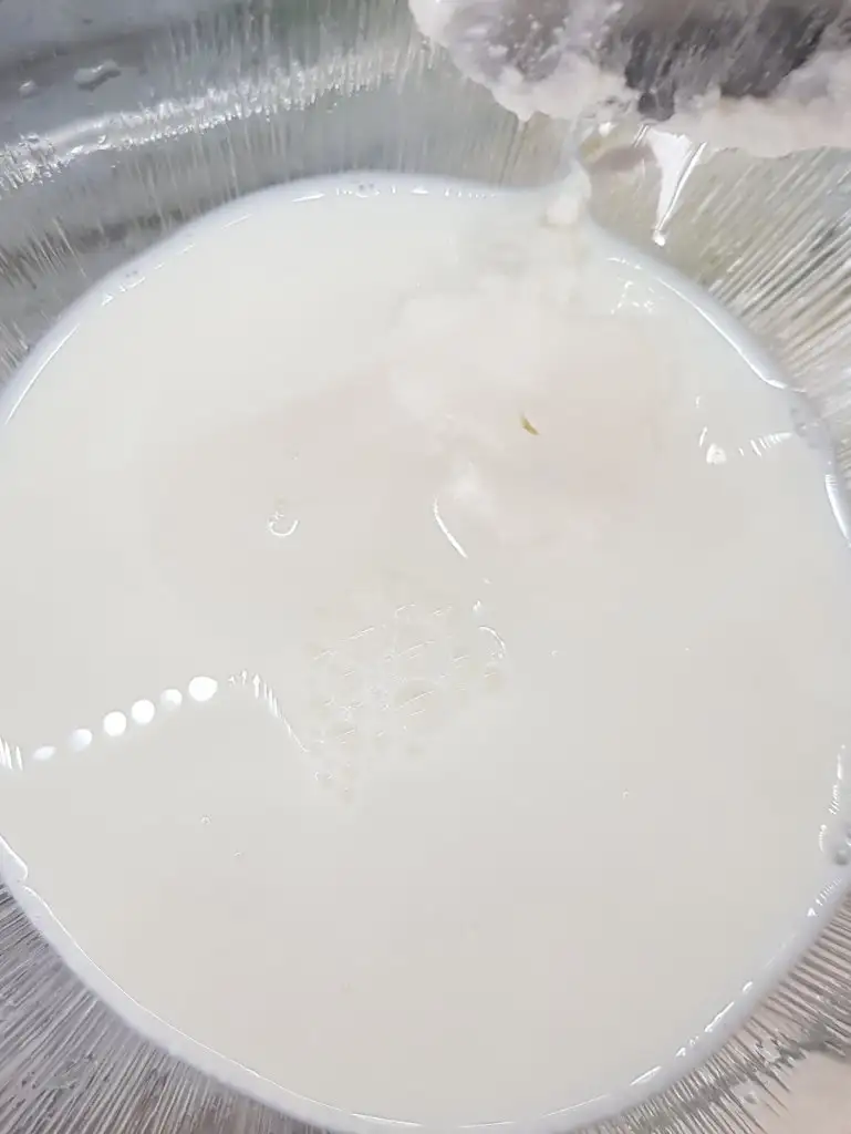 Tencerenin altı kısılır ve 15 dakika çorbanın koyulaşması sağlanır. Bu arada bir su bardağı sütün içine 1 yemek kaşığı labne eklenerek el çırpıcısı ile pürüzsüz hale getirilir , kısık ateşteki çorbanın içine yavaş yavaş çırpıcı ile karıştırarak eklenir, ekleme tamamlanınca çorbanın altı biraz açılır kaynayana kadar çırpıcı ile karıştırılır.