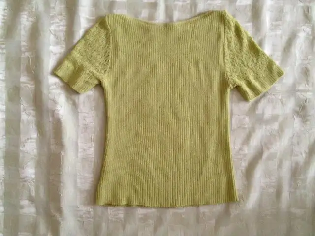 26- Sarı triko. S bedene uygun. Esnektir. Giyilmedi. Dekolteyi güzel gösterir. 8 tl.