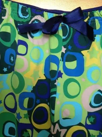 19- Beli lastikli pamuk pijama. M beden. Kullanılmadı. En 35, boy 95 cm. 10 tl.