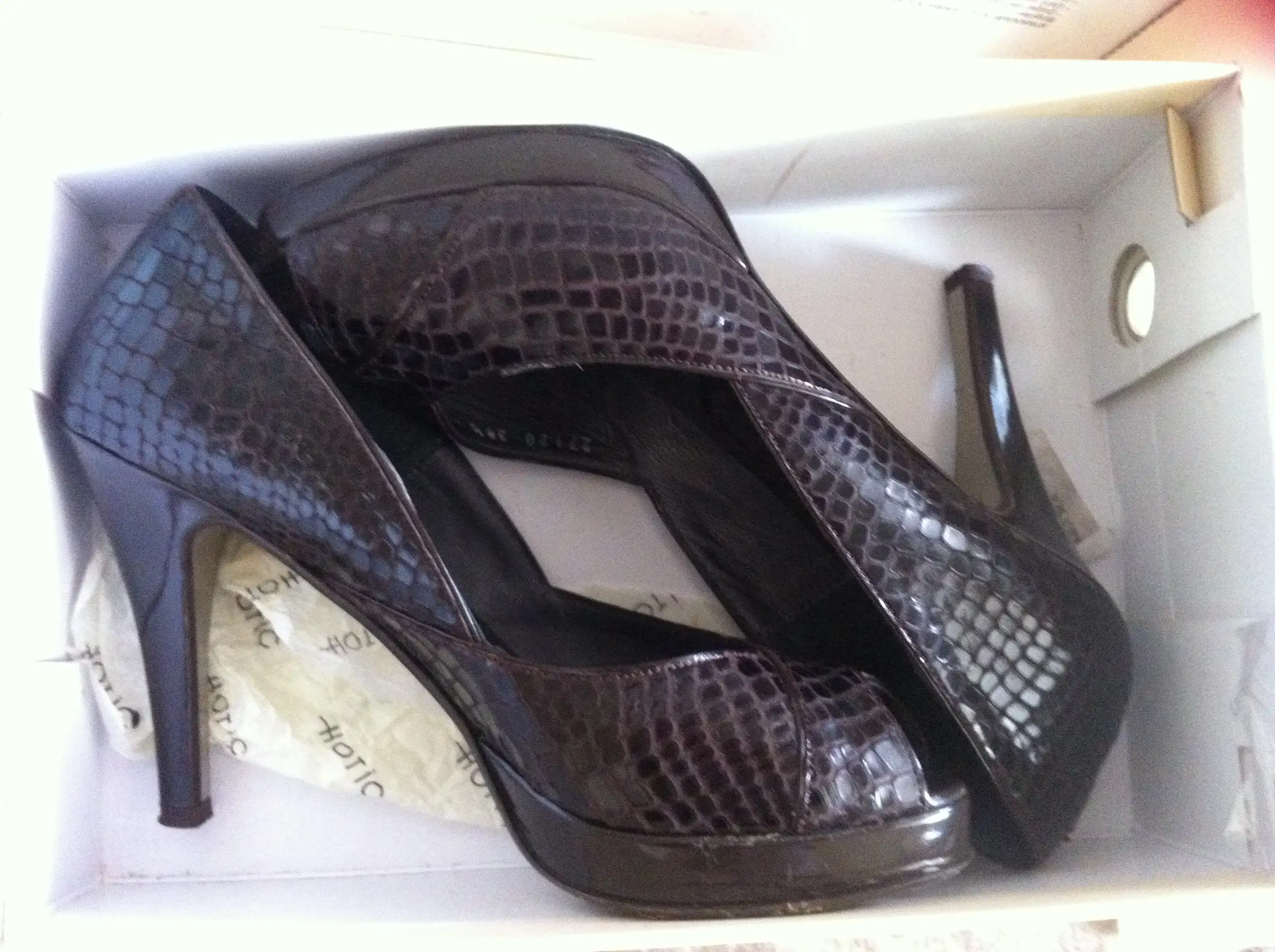 38 numara hiç giyemedim (özel bir güne sakladım ama kısmet olmadı) crocodil baskı gerçek deri harika bir ayakkabı. alırken aşık olmuştummm... resimde siyah gibi çıkmış ama koyu kahve. 75 tl