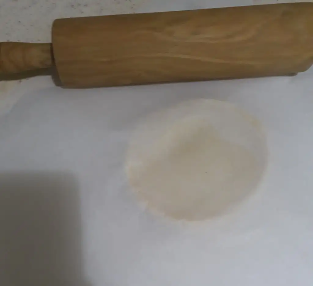 dinlenen hamurumuzu iki yağlı kağıt arasında açıyoruz, bu şekilde hamurun merdaneye yapışmasını önlüyoruz.