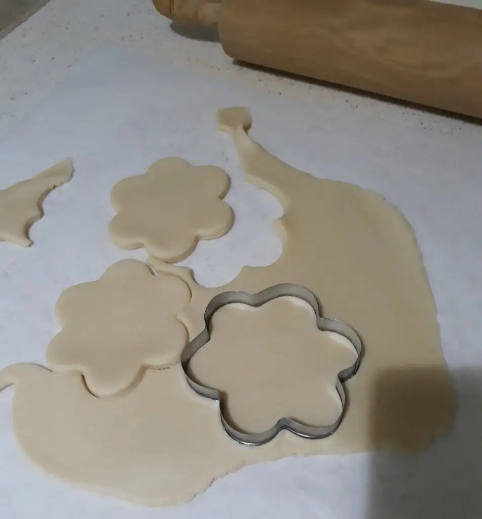 hamurumuzu 0,5 -1 cm kalınlığında açıp istedigimiz kaliplar ile kesiyoruz.