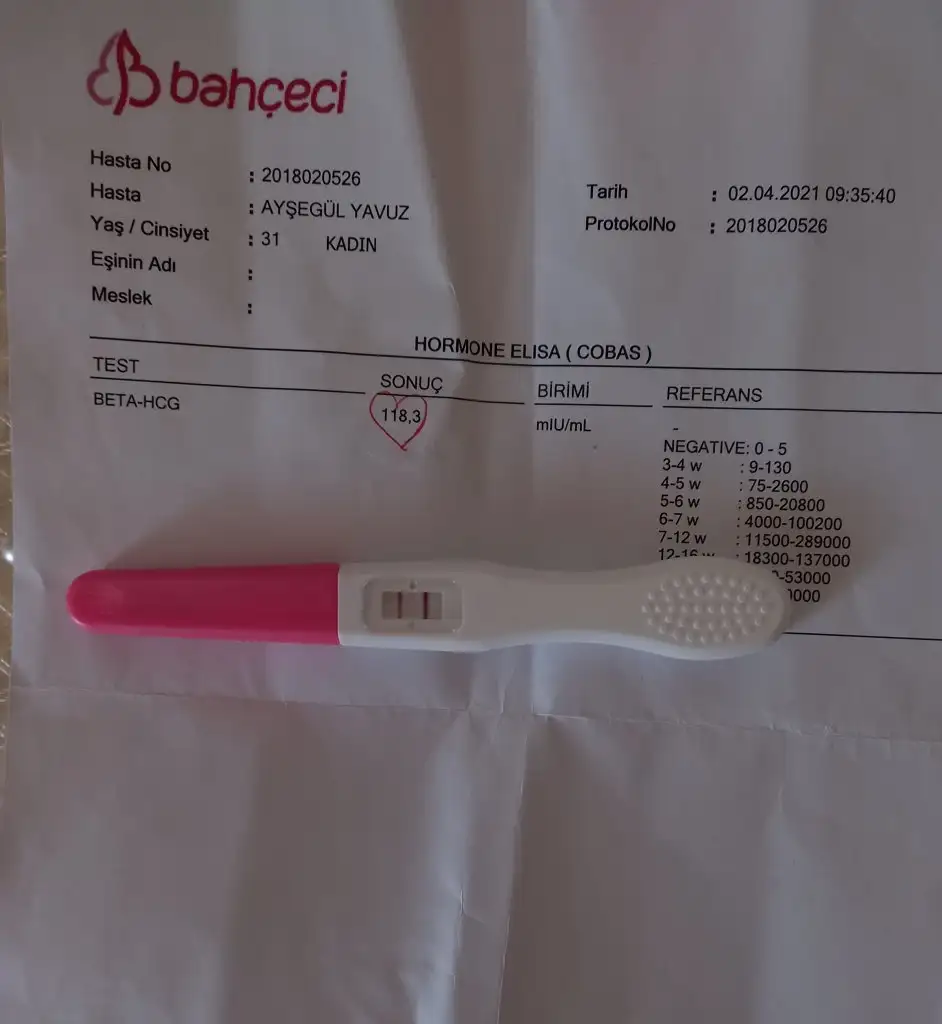 Tamam canım yazarım insallah bugun hayatımda ilk defa çift çizgiyi gordum onun sevinci bile bir başkaymışBelli bi değeri görünce normal diyorlar, senin de değerin güzeldi canıminşallah yarın daha da katlanmış bir şekilde "ben buradayım anne " diyecek sana o kan sonucuyla