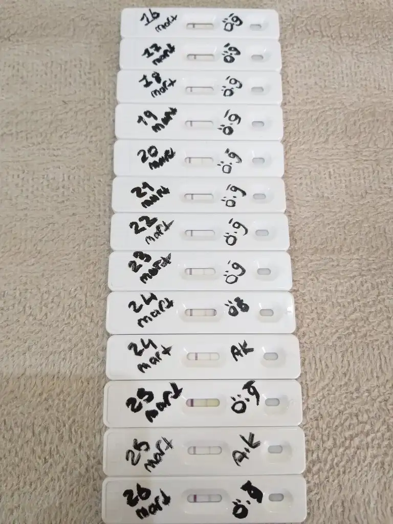 Canım bu yaptıkların ovülasyon mu anlayamadımKızlar benim testler böyle devam ediyor koyulaşma ya başlayınca yakındır dedim ama daha beklediğim koyuyluğu göremedim tabi daha var adet günüme ama görebilicekmiyim acaba Eki Görüntüle 2609288